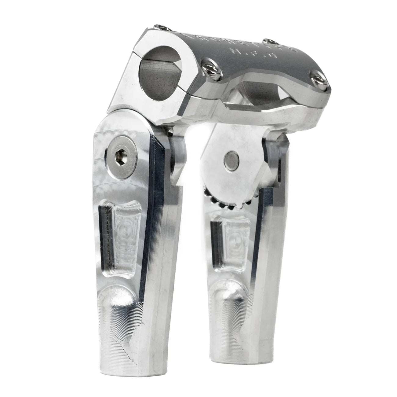 Opie of Opies Speed Shop wanted a simple design to address issues he’s experienced with other risers. A one piece cradle and slimmer legs to be able to accommodate rigorous demands put on parts by freestyle Harley-Davidson stunt riders, he put pen to paper and now he has his own signature riser.