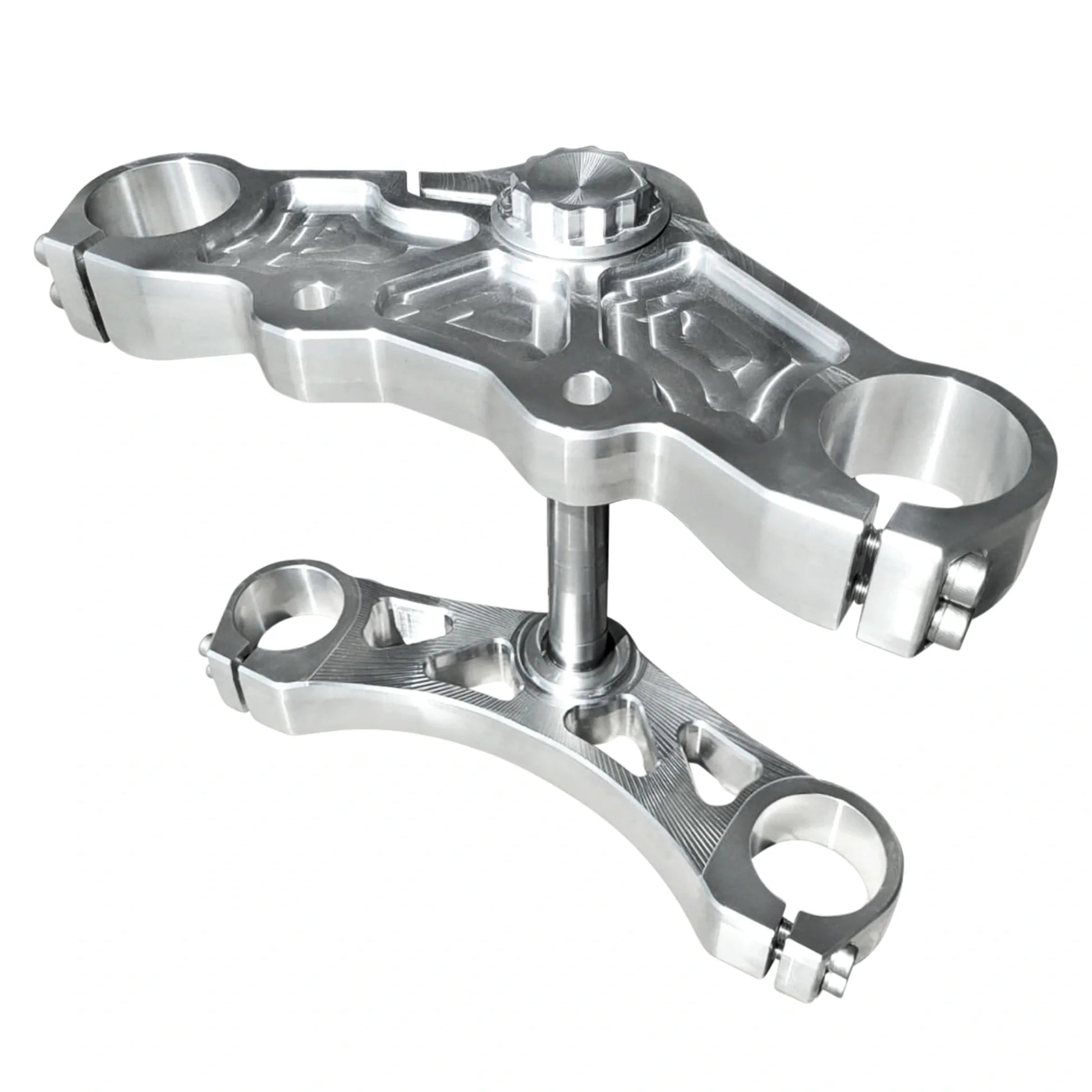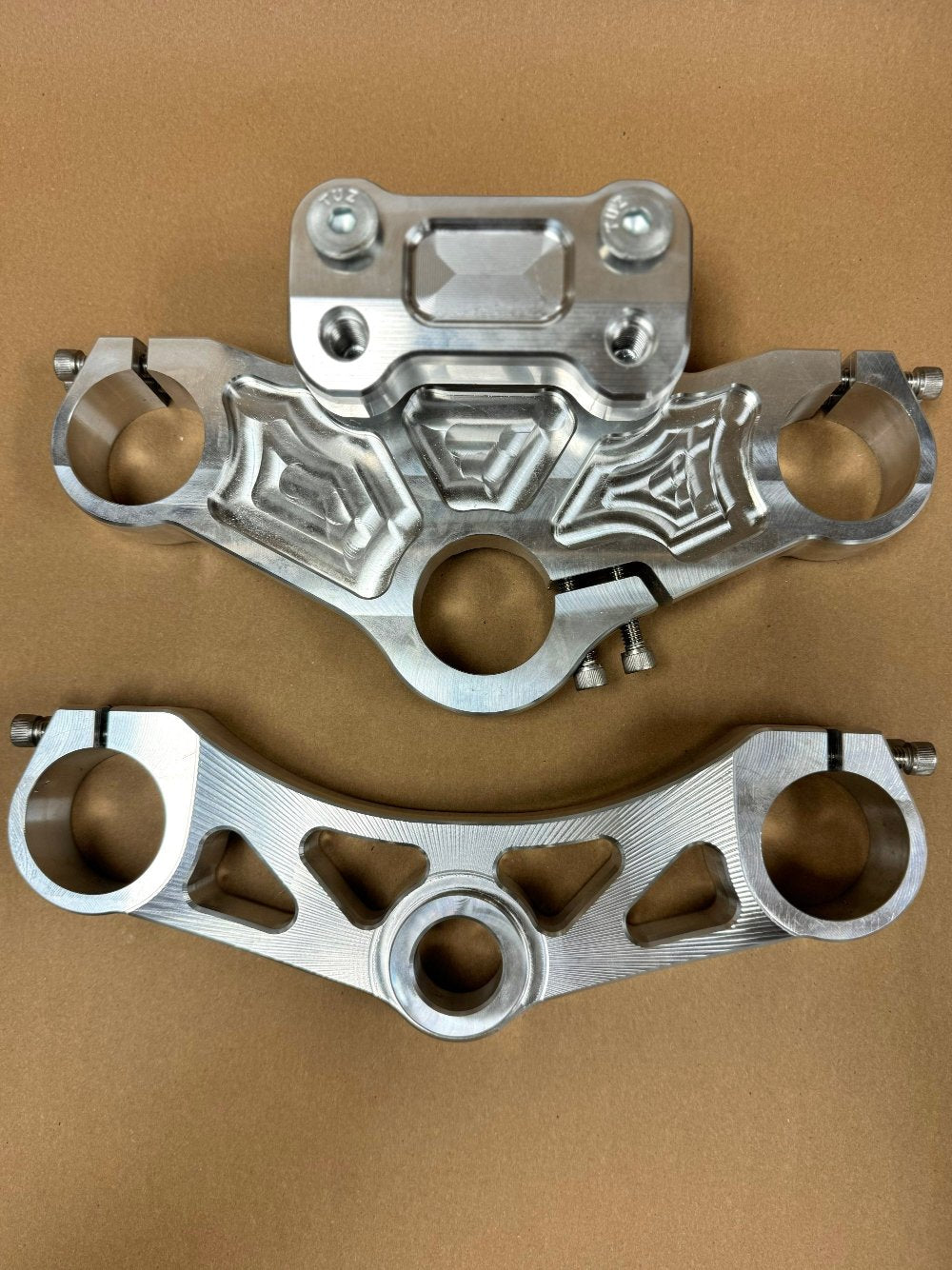 These triple trees are specifically engineered to enable the upgrade from a 41mm fork tube to a 49mm fork tube.
