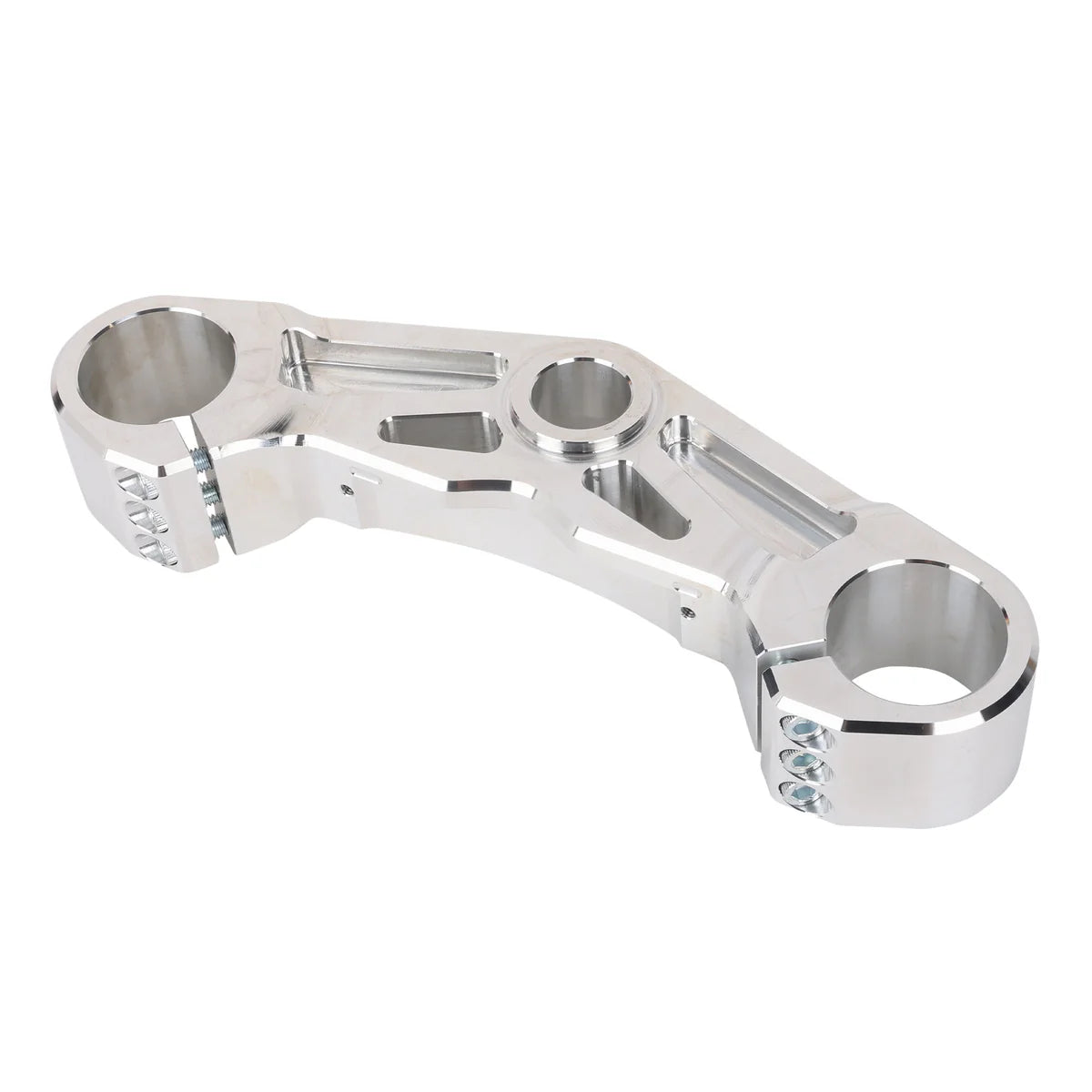 Designed for maximized fork structure. Increased surface clamping area minimizes fork flex and 3 clamping bolts help ensure you don't sacrifice any grip.