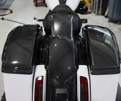 The new 2024 Carbon Fiber Bag Lids are made to OEM spec for Road Glide and Street Glide. These Carbon Fiber bag lids are lightweight and made from 100% carbon fiber (no fiberglass.)