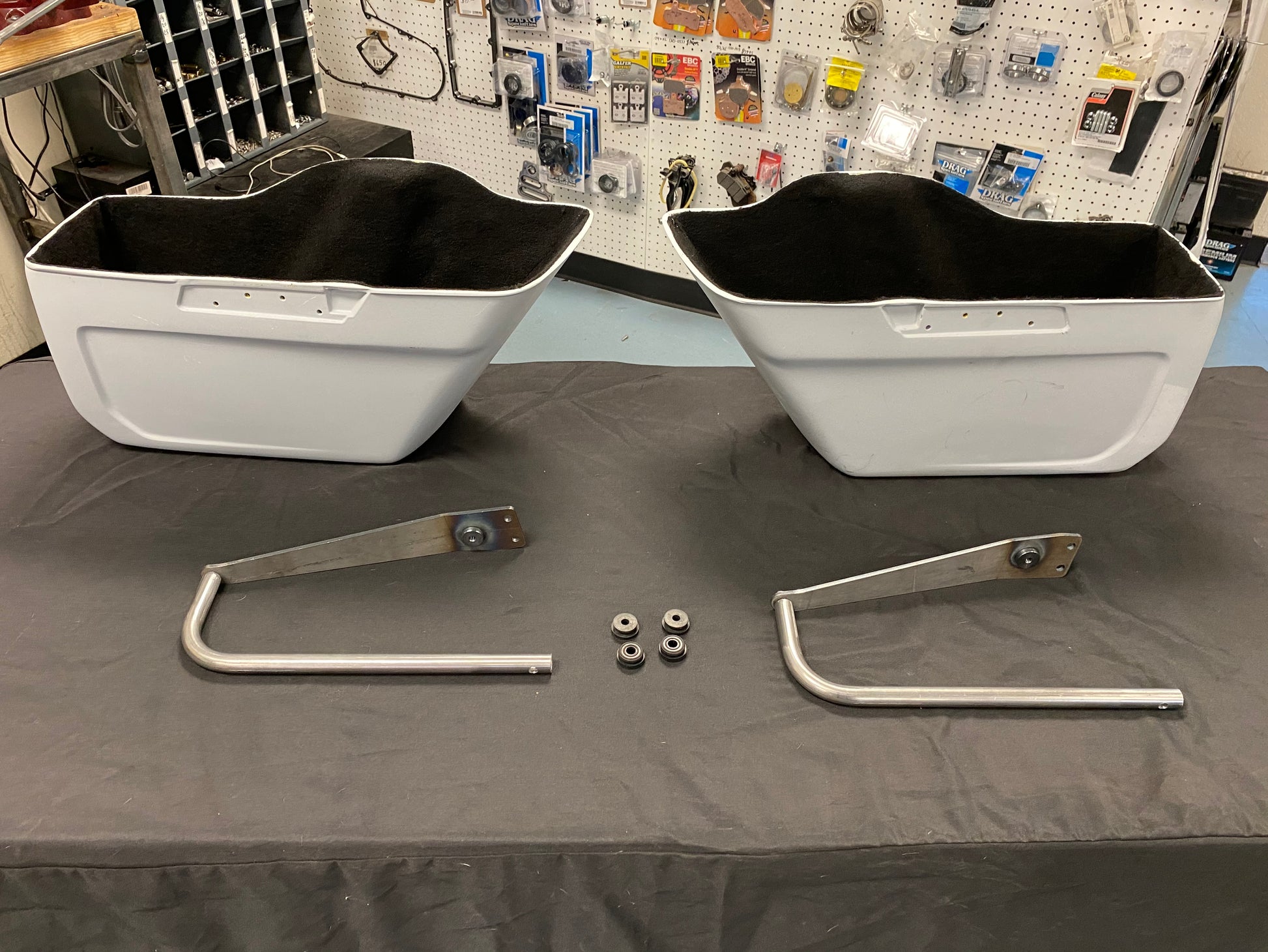 We started by taking 2” out of the rear of the bag keeping storage and room plentiful. We then cut down the bag rails a total of 4” as to prevent the rail from sticking out behind the bag giving that OEM look. These bags come pre lined and drilled for mounting. OEM Rubber bag cushions can be reused out of your old bags.