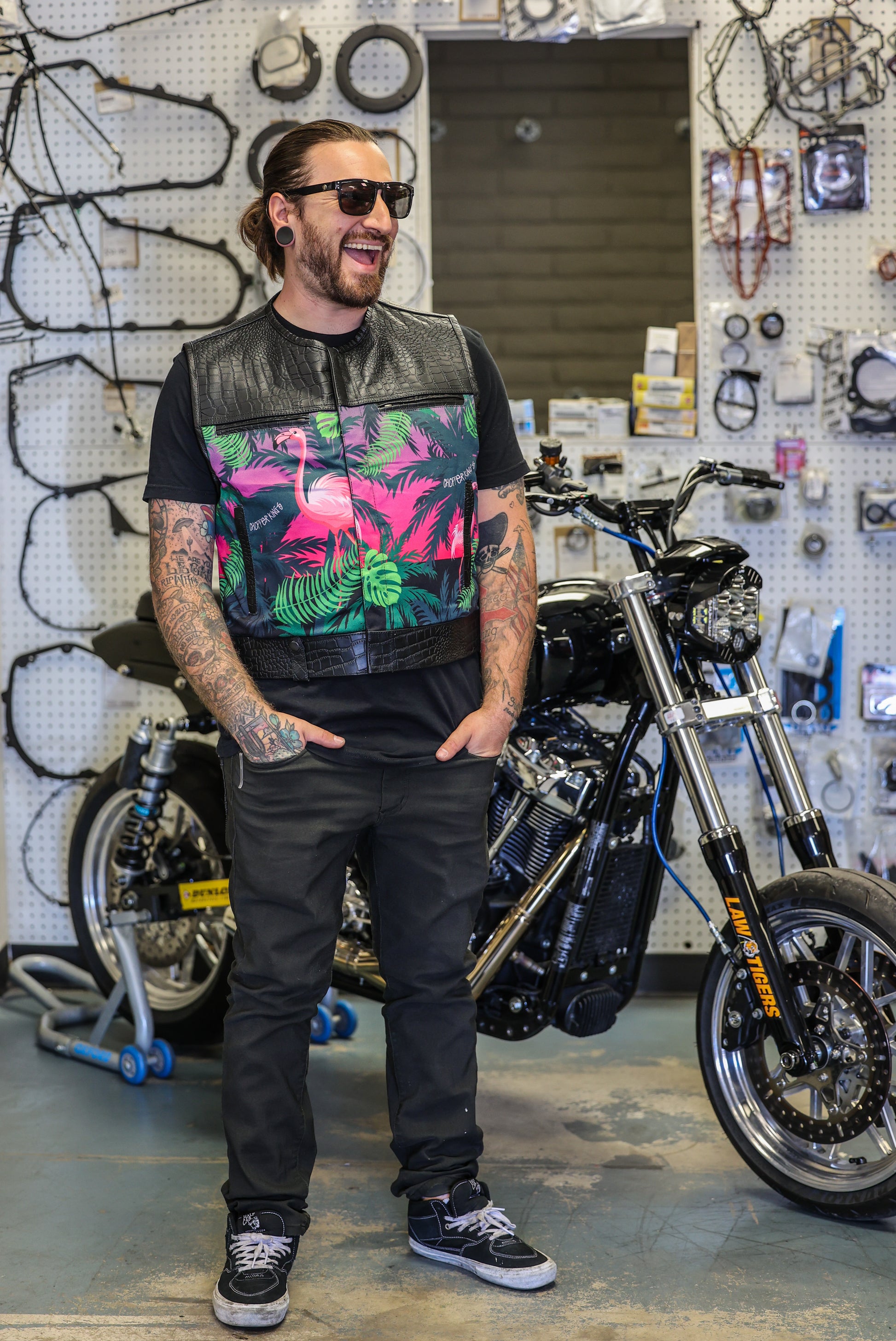 Just in time for summer we have our Kruesi Originals Party Vests. These are cut short so they don’t ride up into your neck when you’re riding. Include 2 interior pockets as well as a stash pocket, along with 4 outside pockets. Not to mention the classic Hawaiian flamingo design.